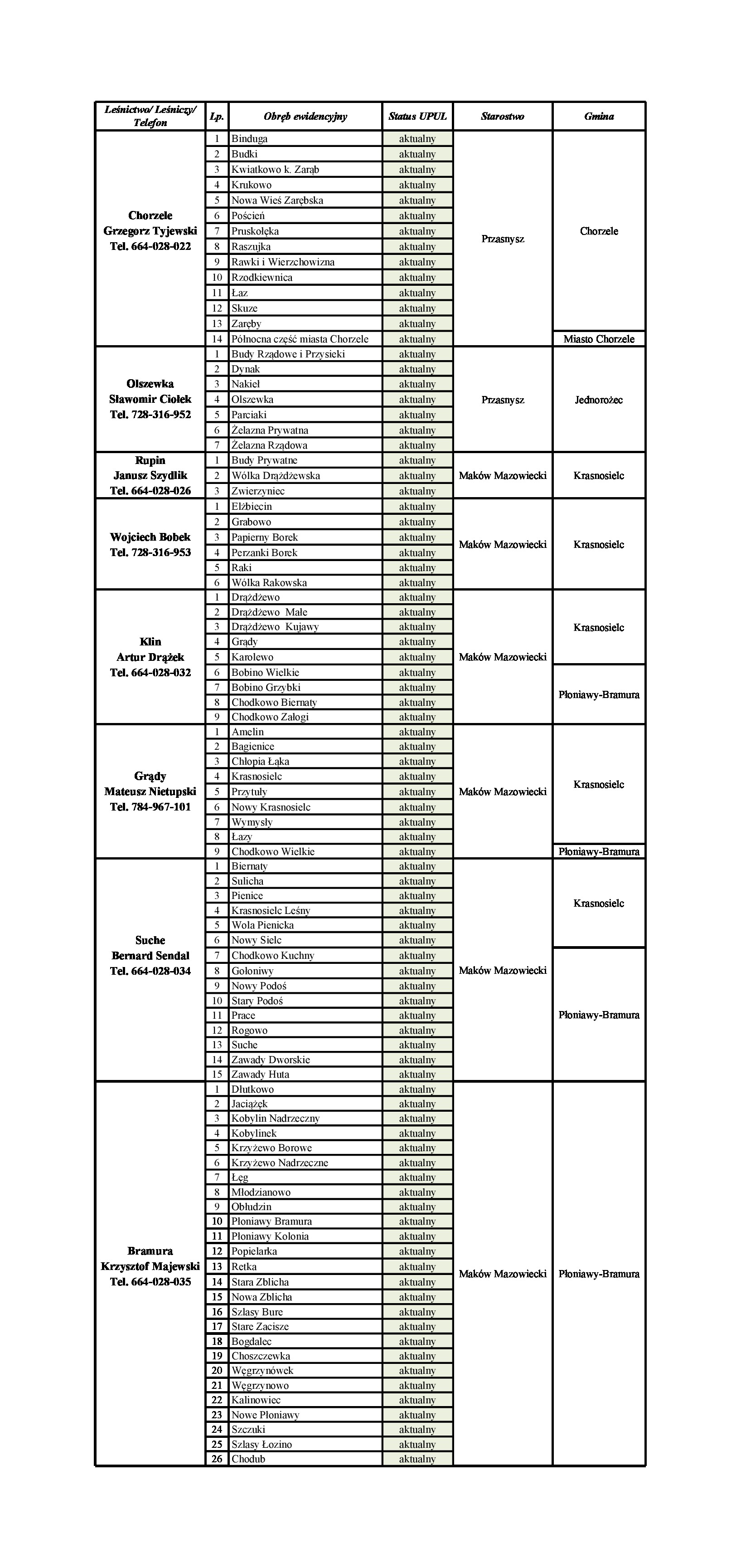 - Ze Starostwem Powiatowym w Makowie Mazowieckim z dnia 3 lutego 2022 roku, które przekazuje nadzorowane lasy w ilości 3 917,70 ha.